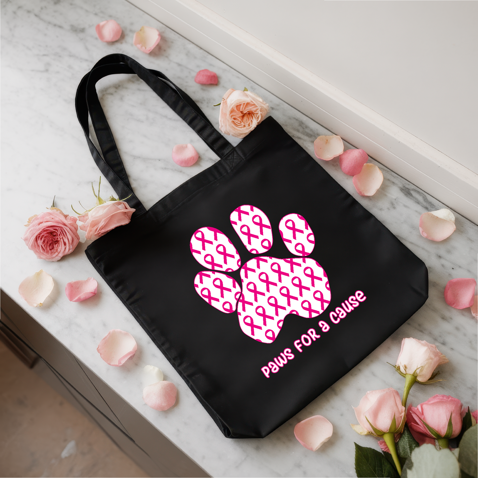 Show your support with Petunia's pawprint filled with pink breast cancer awareness ribbons. Every time you grab a Paws for a Cause Tote Bag, 20% of the sale goes to the Babylon Breast Cancer Coalition. Stylish and meaningful, this tote is made from 100% recycled cotton with a 4.7 oz. plain weave. Sized at 15.5" wide by 16.5" high, it’s perfect for carrying your essentials while making a pawsitive impact!